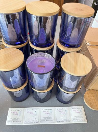 What a pleasure it was to work with Magic for Maddie Foundation in creating these very purple candles! It was a request that I was eager to develop. Through some trial and error, we finally came up with a winner - and added some glitter. Two different scented candles were sold to Magic for Maddie, and they were able to sell/gift the candles to Maddie's Crew.